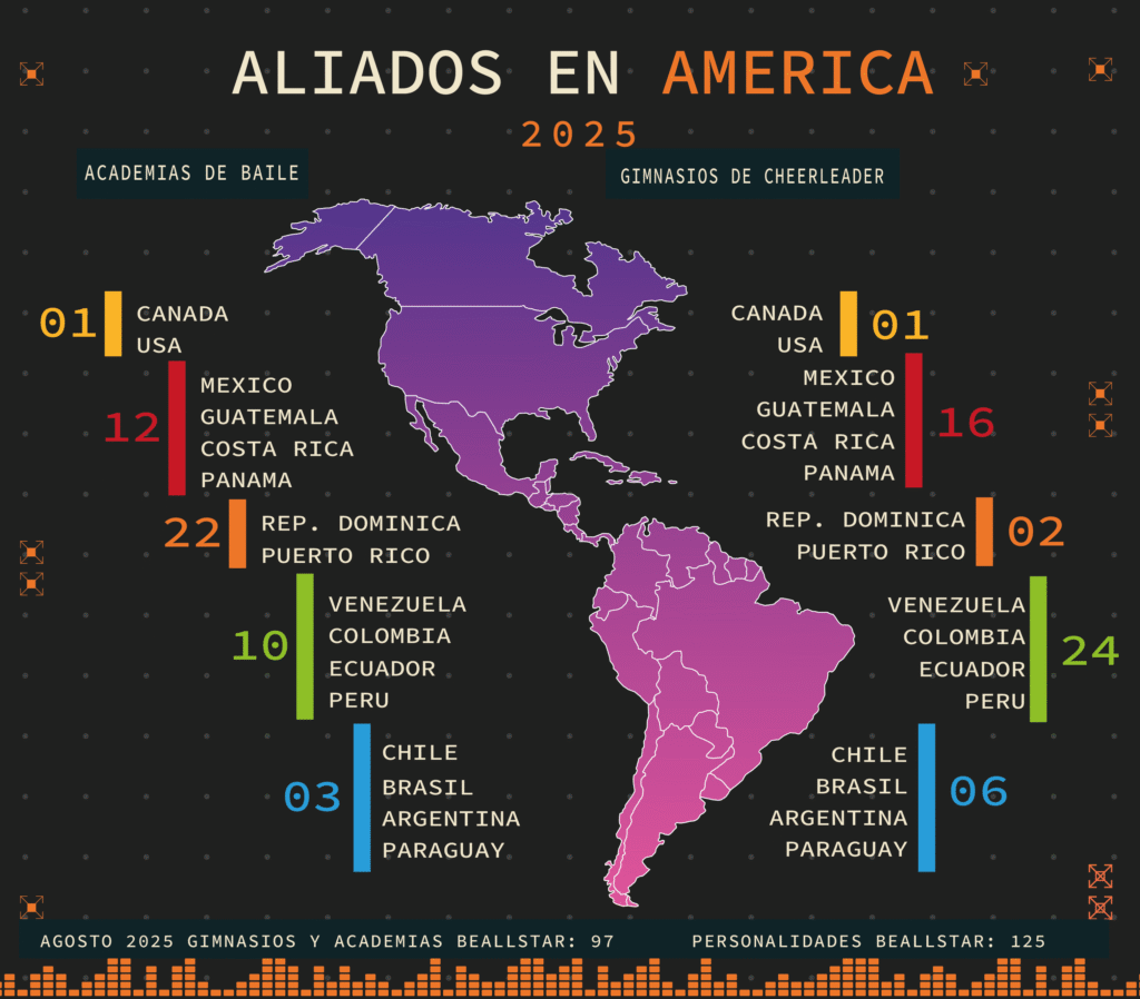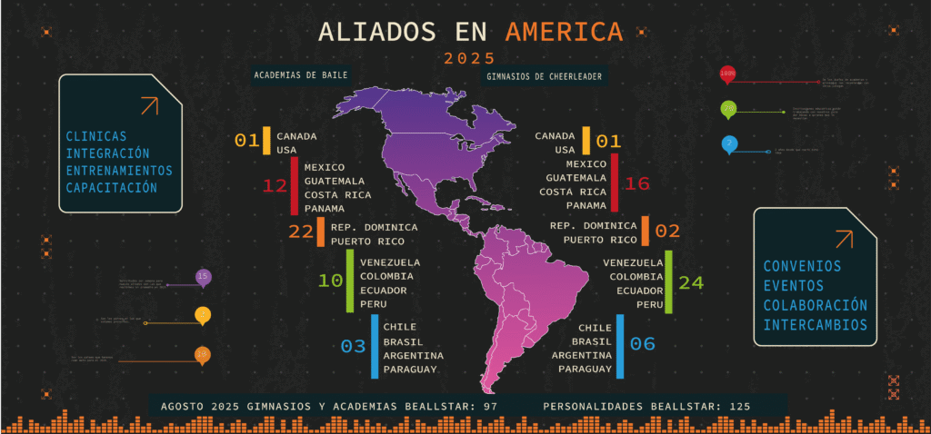 GIMNASIOS DE CHEERLEADER Y ACADEMIAS DE BAILE POR PAISES